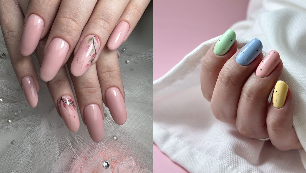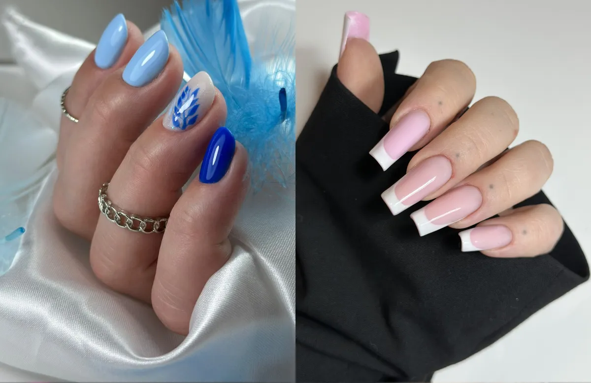Stylizacja hybrydowa łączy zalety zwykłego lakieru i żelu. Nakładana jest warstwami i utrwalana lampą UV — dzięki temu trzyma się tygodniami i nie odpryskuje jak zwykły lakier.