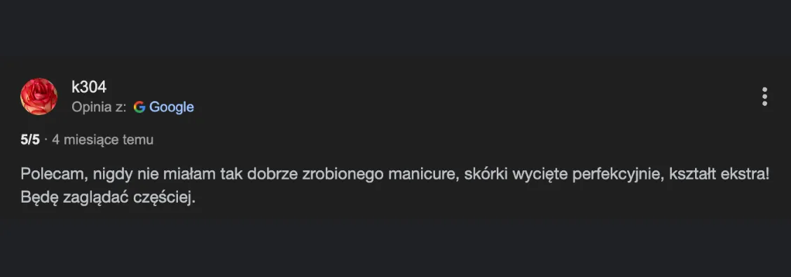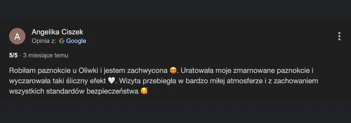 Kiedy twoje paznokcie są zadbane — czujesz się zadbana. Nie zastanawiasz się, czy chować dłonie podczas rozmowy, podczas spotkania czy podczas zdjęcia. Po prostu wyciągasz rękę i wiesz, że wygląda dobrze.